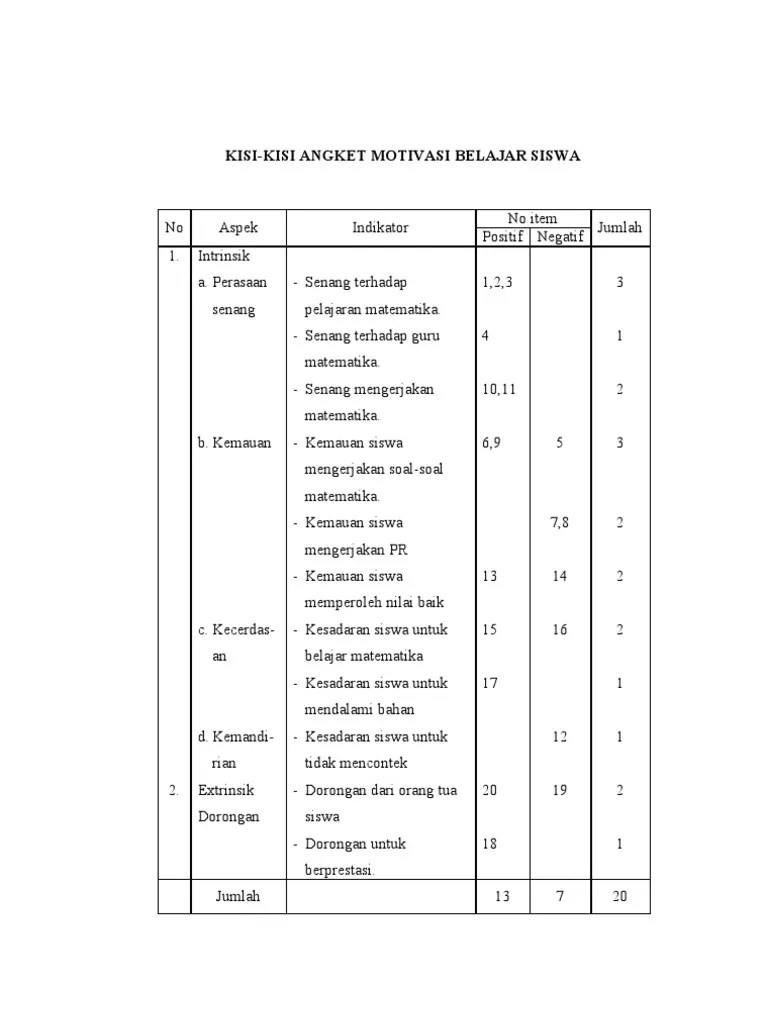 Contoh Kisi Kisi Angket Motivasi Belajar : Kisi Kisi Angket Docx Document - (diadaptasi dari ciri motivasi belajar menurut sardiman, h.