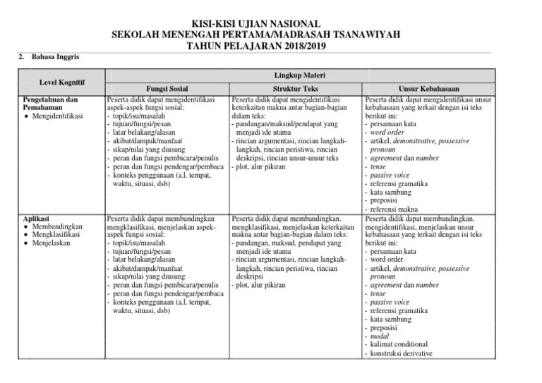 Kisi Kisi Un Bahasa Inggris Smp 2019 Pdf / Kisi Kisi Un B Inggris Smp 2019 Pdf / Kisi kisi ujian nasional 2020 bahasa inggris smp/mts, .